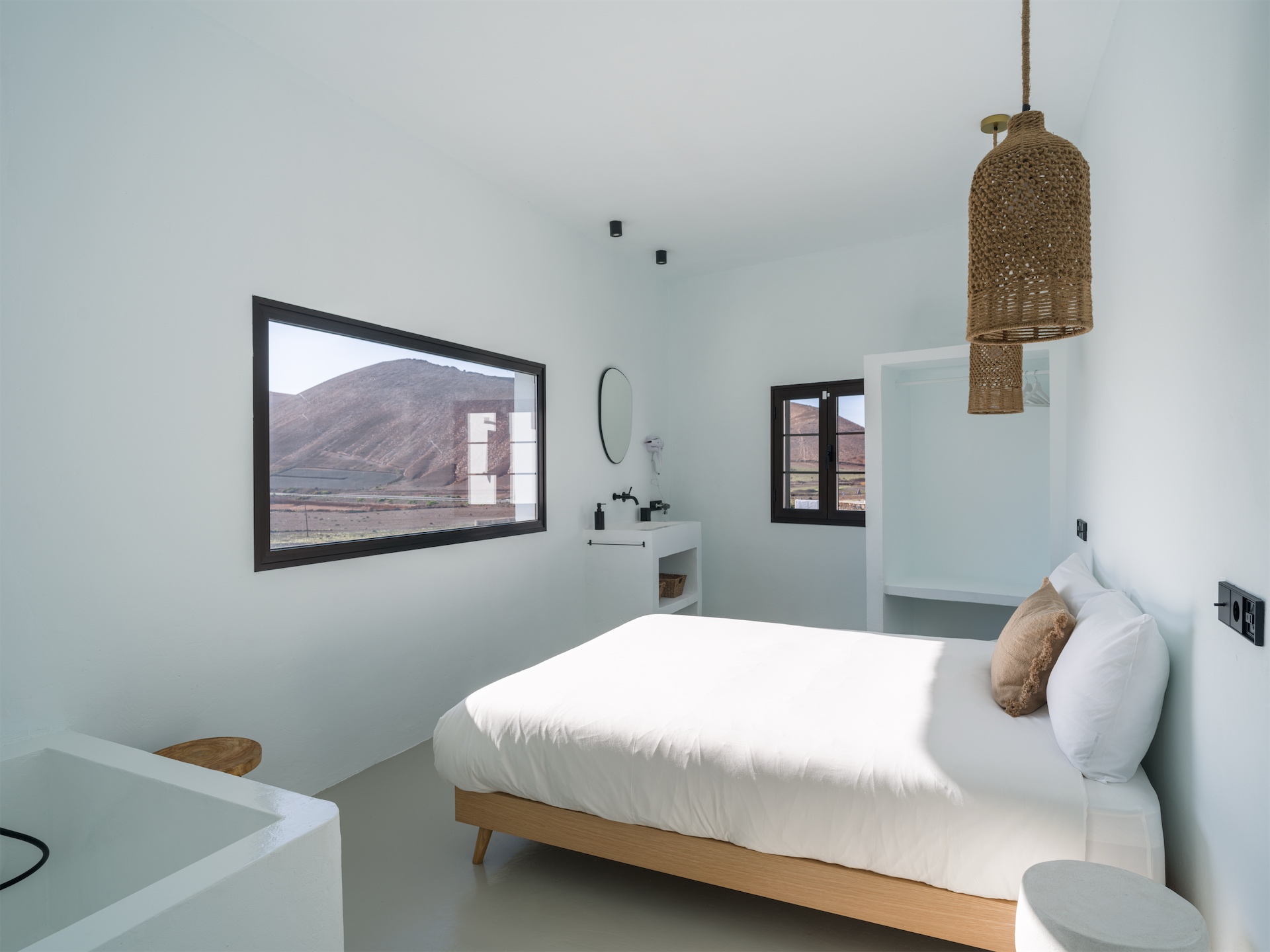 In the heart of Lanzarote, surrounded by volcanic slopes and protected natural land, La Casita de Femés was conceived as a harmonious extension of its environment. Built using ecological materials sourced from the island, the property respects vernacular architectural principles: whitewashed walls, clean lines, and a restrained aesthetic that allows the landscape to remain the protagonist.
